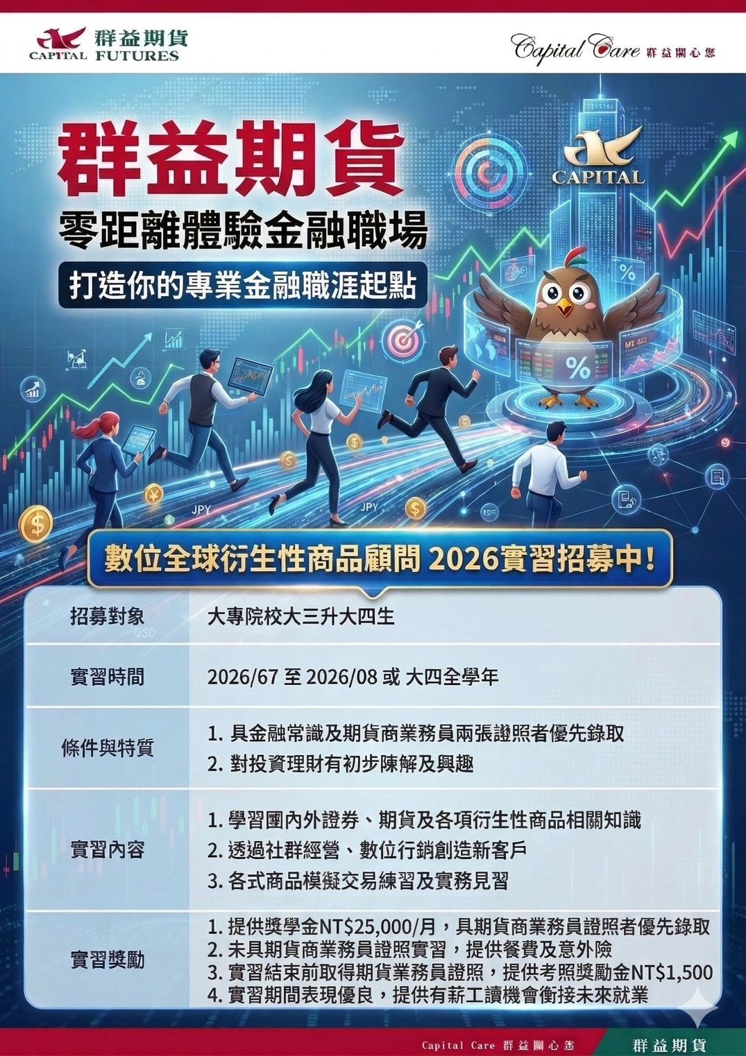 【實習】群益證券/群益期貨115年暑期實習計劃(申請至4/30止)